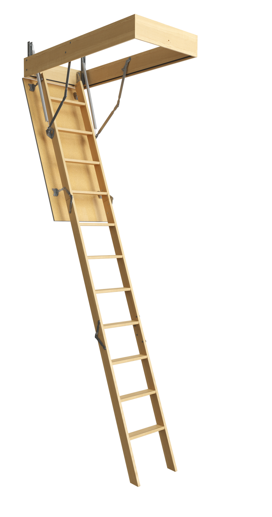 Ряд практичных решений позволил снизить стоимость лестницы без ущерба для важных характеристик. Люк стал легче за счет отказа от слоя утеплителя. Длина ступени осталась такой же, как и в серии STANDARD – 340 мм, а ширина составила 70 мм. Шаг ступеней 250 мм будет удобным для человека любого роста. Несмотря на облегченную конструкцию, эта чердачная лестница выдержит до 150 кг.