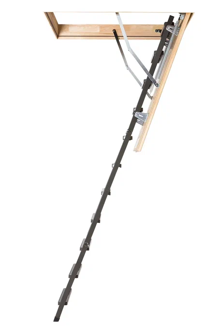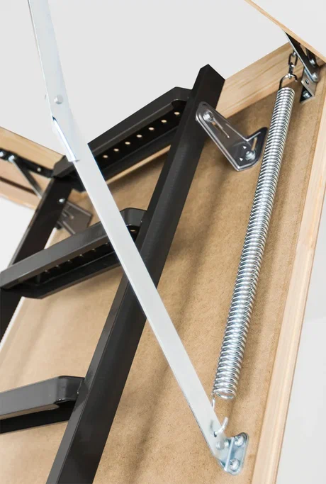 Улучшенная модель металлической складной лестницы. Основное отличие от модели LMS – крышка люка белого цвета и боковой поручень для безопасного подъёма на чердак. Благодаря двойному соединению петель и усиленному лестничному маршу, имеет повышенную прочность.