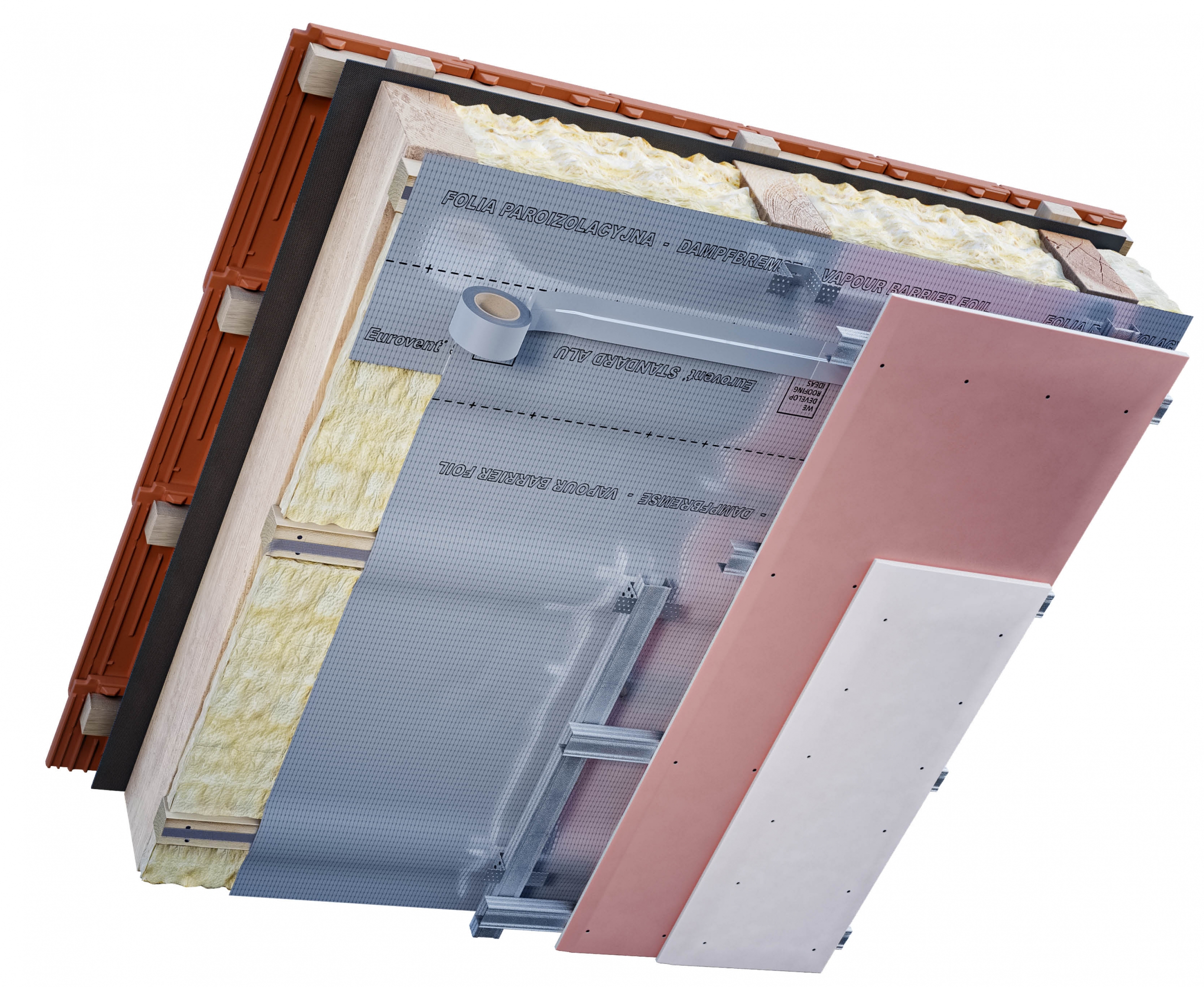 Применяется в жилым и промышленным строительстве как пароизоляционный слой защищающий мансарду от лишней влаги, которая может поступать изнутри помещений в направлении теплоизоляции. Её активные свойства предотвращают «эффект полиэтиленового пакета», то есть появление в мансарде плесени и грибка в результате избыточной влаги. Защищает деревянную конструкцию от гниения. При монтаже необходимо использовать самоклеющуюся ленту Eurovent® DUO для склеивания нахлестов и герметизации соединений мембраны с конструкцией крыши.