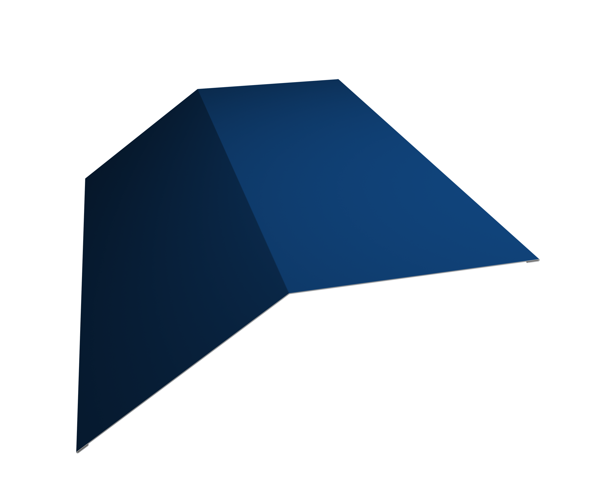 Планка конька плоского предназначена для защиты от попадания влаги, грязи в подкровельное пространство и от срыва листов порывами ветра, закрывая листы металлочерепицы или профнастила на коньке и наружных переломах кровли.
