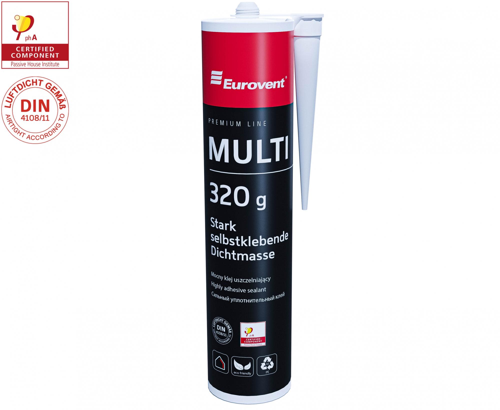 Eurovent® MULTI - это безрасплавочный универсальный клей, идеально подходящий для склеивания пароизоляционных пленок, кровельных мембран. Он очень устойчив к старению, крайне гибкий и упругий, чувствительный к движениям здания - для склеивания расширительных швов, подходит для штукатурки и покраски. Eurovent® MULTI получил сертификат Passive House Institute в классе герметичности phA.