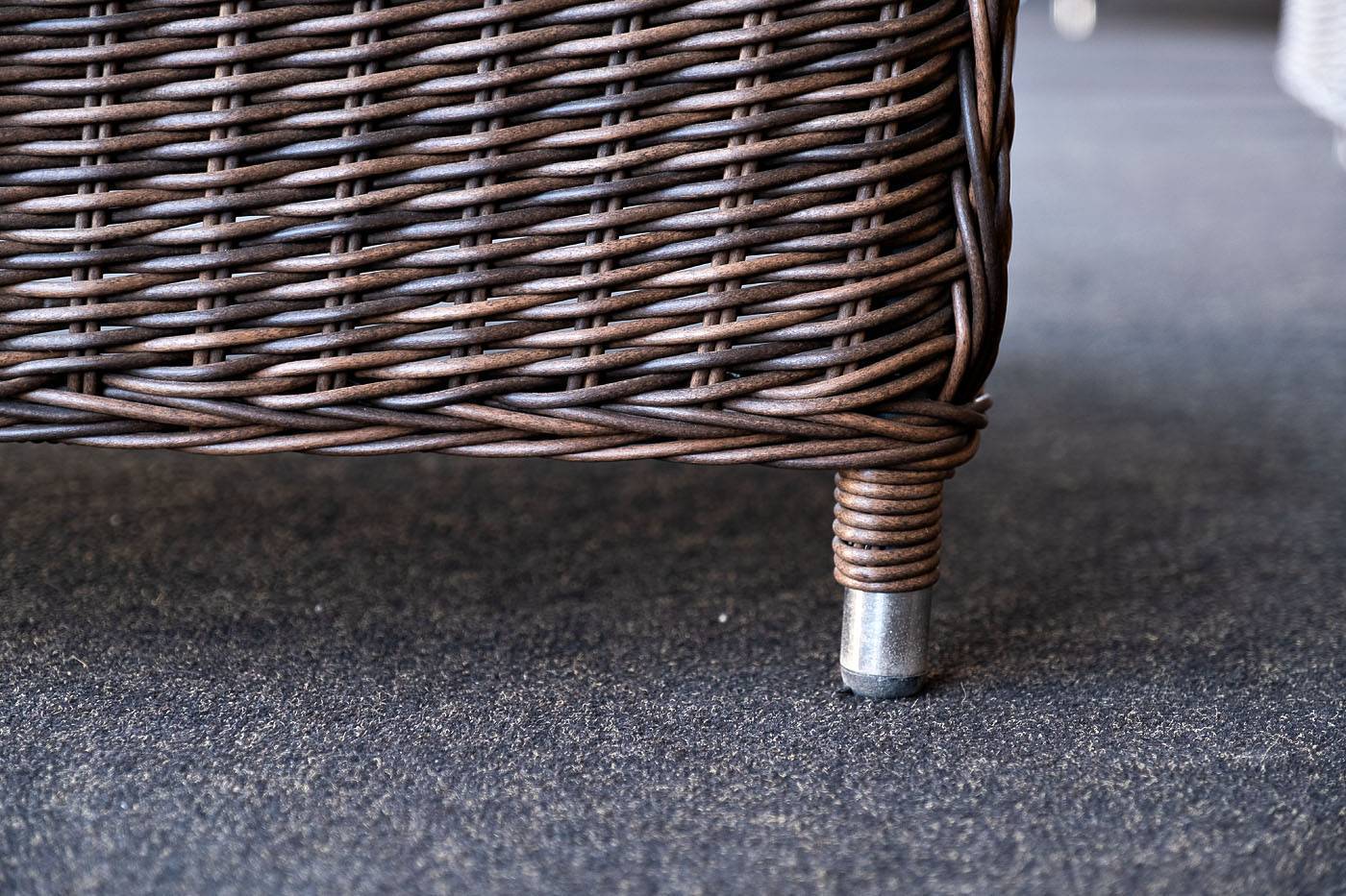 Размер модели – 800×800×800 мм. В качестве основы служит алюминиевый каркас, который оплетен круглым искусственным ротангом коричневого оттенка.