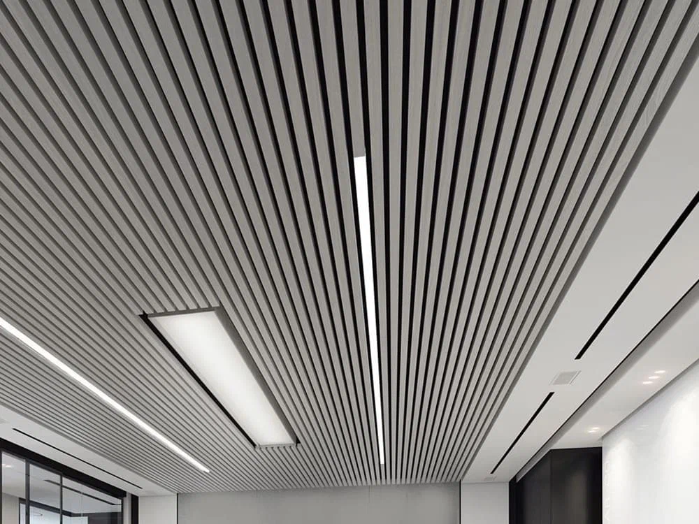 Система кубических реек позволяет использовать на одном подвесном профиле несколько размеров панелей различной высоты и ширины.