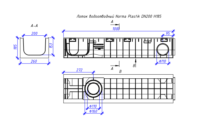 оток водоотводный пластиковый Aquastok Norma DN200 - универсальное решение для организации водоотведения и вашей защиты от размытия почвы, образования луж и подтоплений.