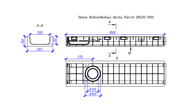 Лоток водоотводный пластиковый Aquastok Norma DN200 - универсальное решение для организации водоотведения и вашей защиты от размытия почвы, образования луж и подтоплений.