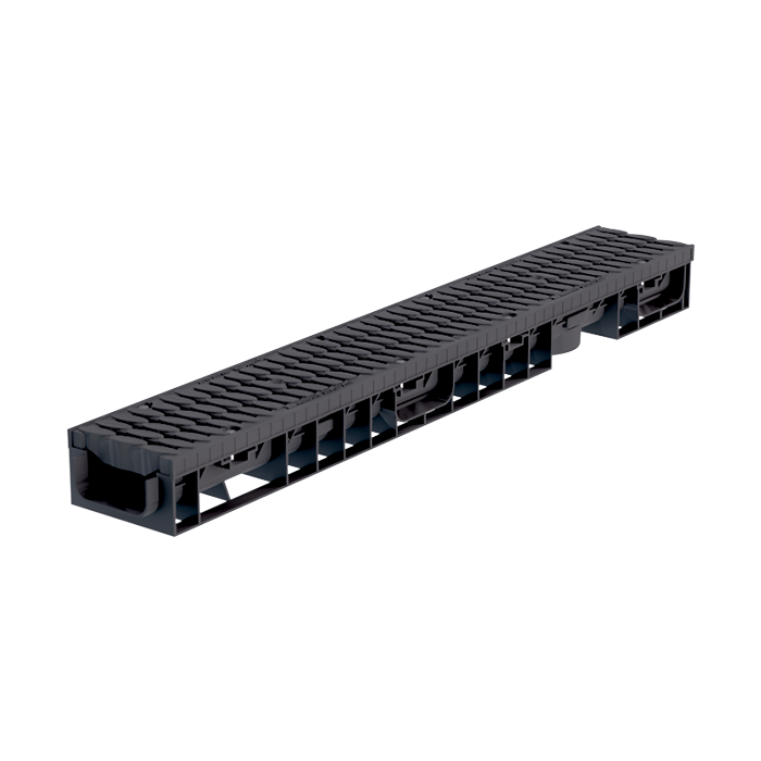 - Высокая нагрузочная способность - 30-ти миллиметровая усиленная решётка, выполненная из композитного полипропилена, обеспечивает класс нагрузки B125 и позволяет выдерживать до 12,5 тонн. Такое решение делает возможным проезд легкового транспорта, что позволяет лотку «Master» быть идеальным для использования в зонах движения легковых автомобилей, например парковках или въездах в гараж.