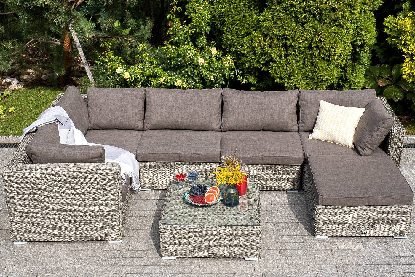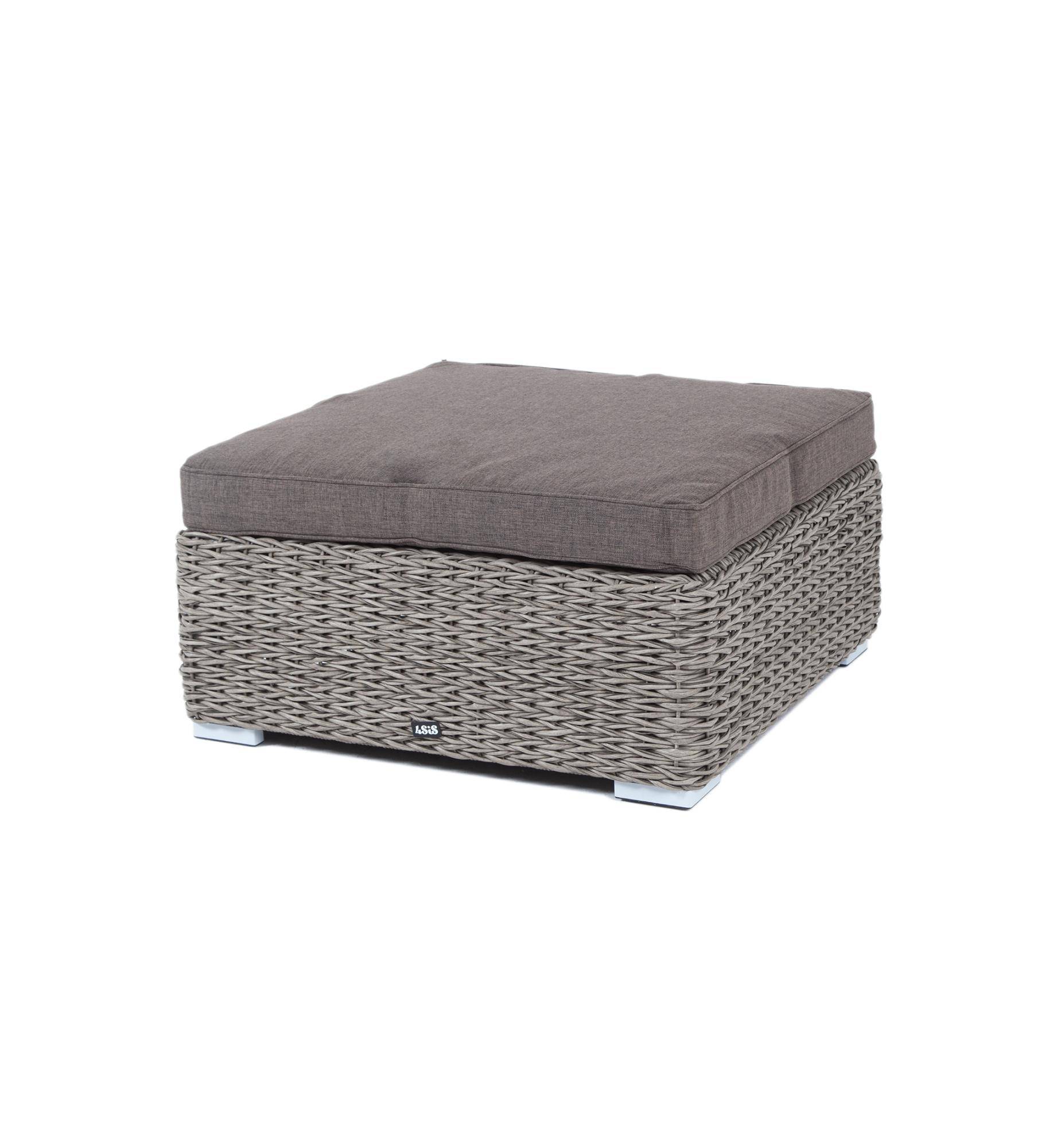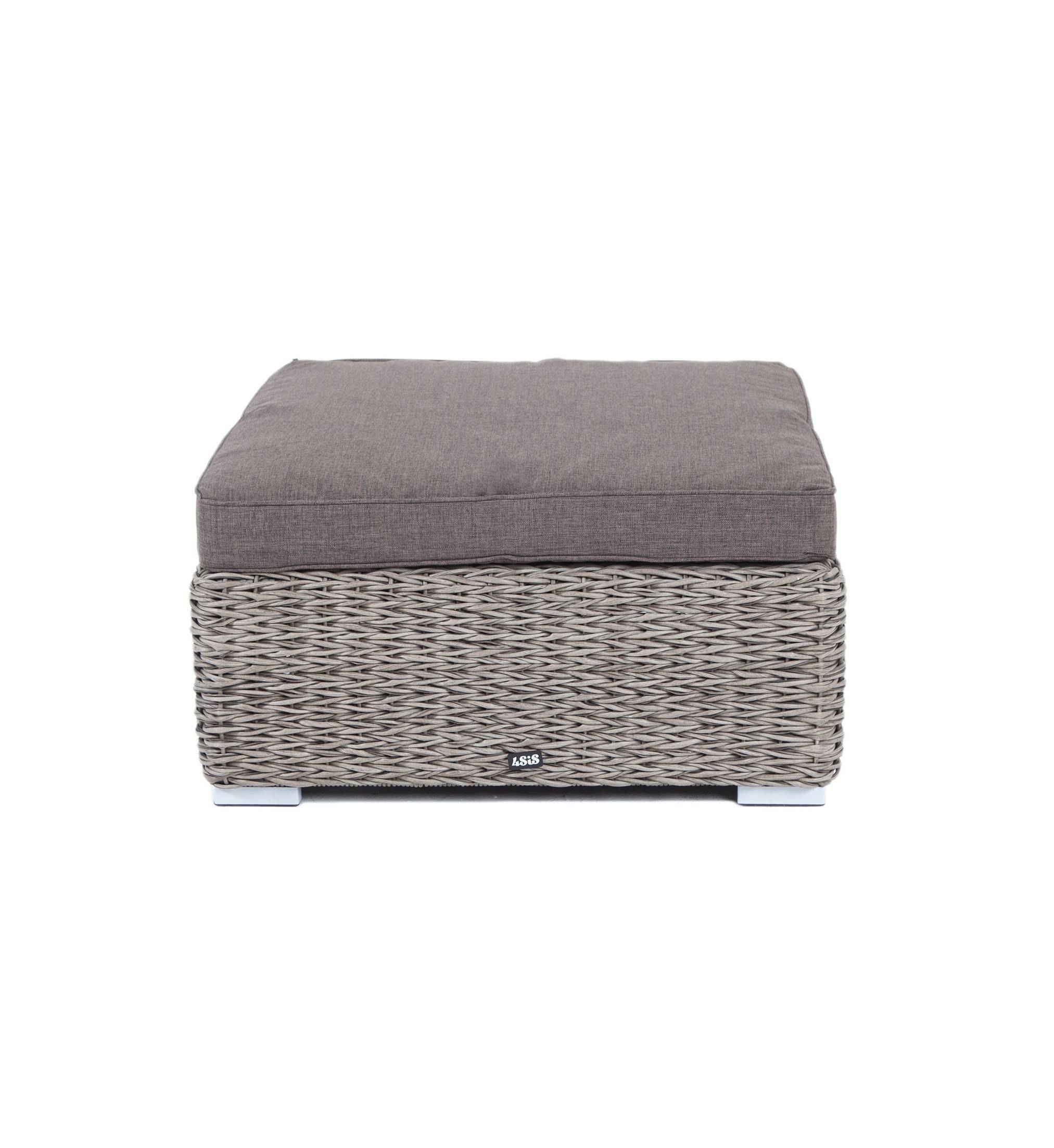 Она имеет каркас из алюминия высокой прочности. Для изготовления используется ручное плетение вида «гиацинт», выполненное из искусственного ротанга. Оттоманка может служить в комплекте с трансформирующимся диваном «Лунго».
