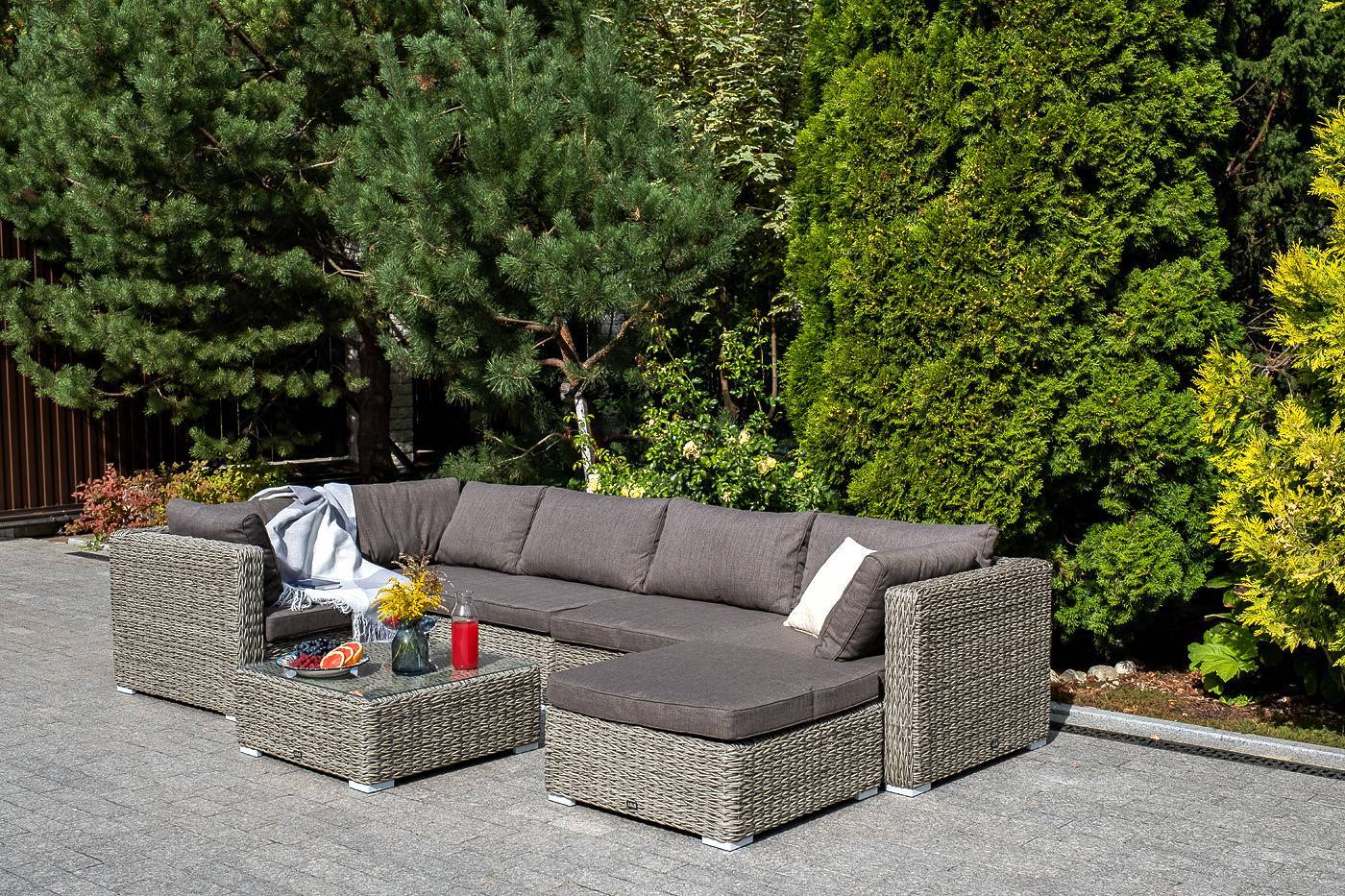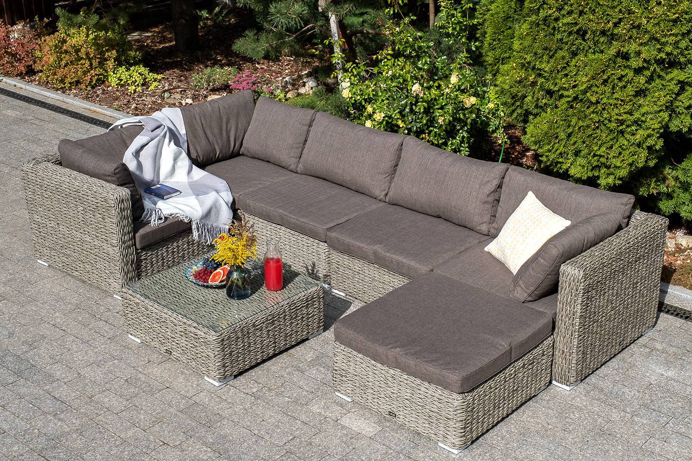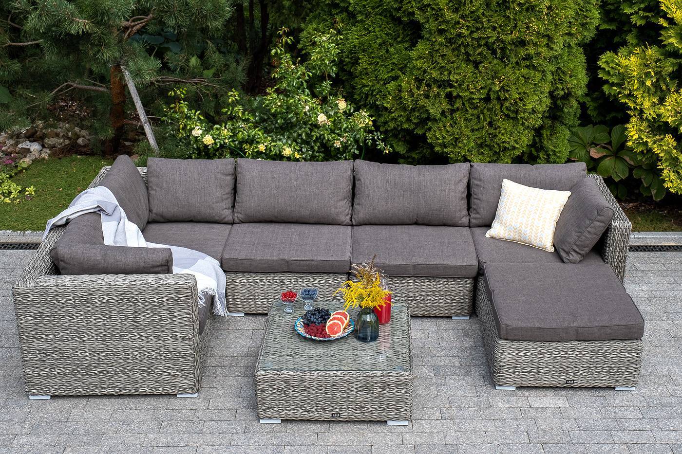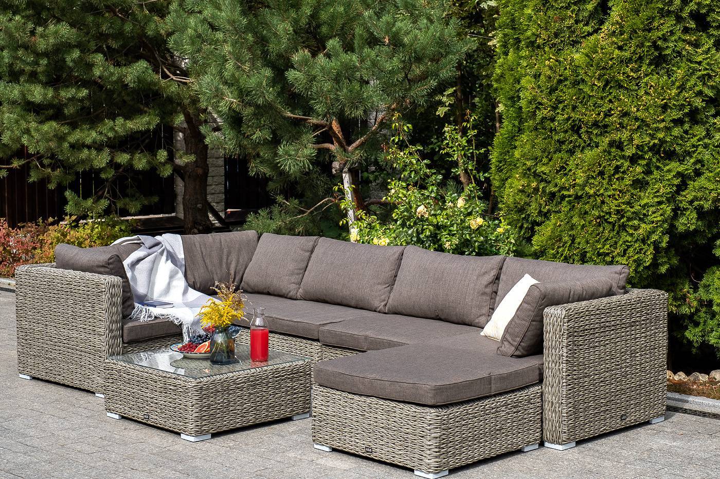 Она имеет каркас из алюминия высокой прочности. Для изготовления используется ручное плетение вида «гиацинт», выполненное из искусственного ротанга. Оттоманка может служить в комплекте с трансформирующимся диваном «Лунго».