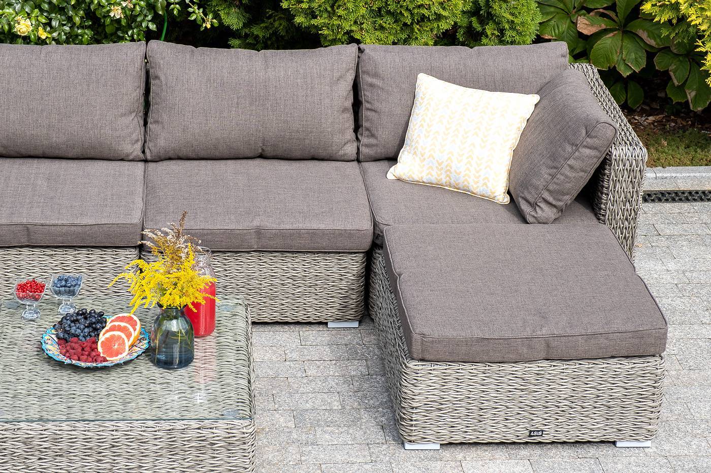 Предмет мебели дополняется мягкой подушкой в съёмном чехле серо-коричневого цвета. При пошиве берется полиэстер с плотностью 230гр/м2. Предусмотрена влагоотталкивающая пропитка, которая защищает изделие от влаги.