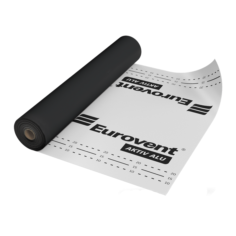Eurovent AKTIV ALU - трехслойная алюминевая пароизоляционная мембрана. Состоится из алюминевого слоя, функциональной пленки и полипропиленого волокна. Слой алюминия обеспечивает отражание солнечных лучей внутрь здания. Aктивные свойства пароизоляционной мембраны предотвращают конденсацию водяного пара, чего не способны сделать обычные пароизоляционные пленки. Производится на заказ материал с двумя самоклеящимися лентами – маркировка SK2.