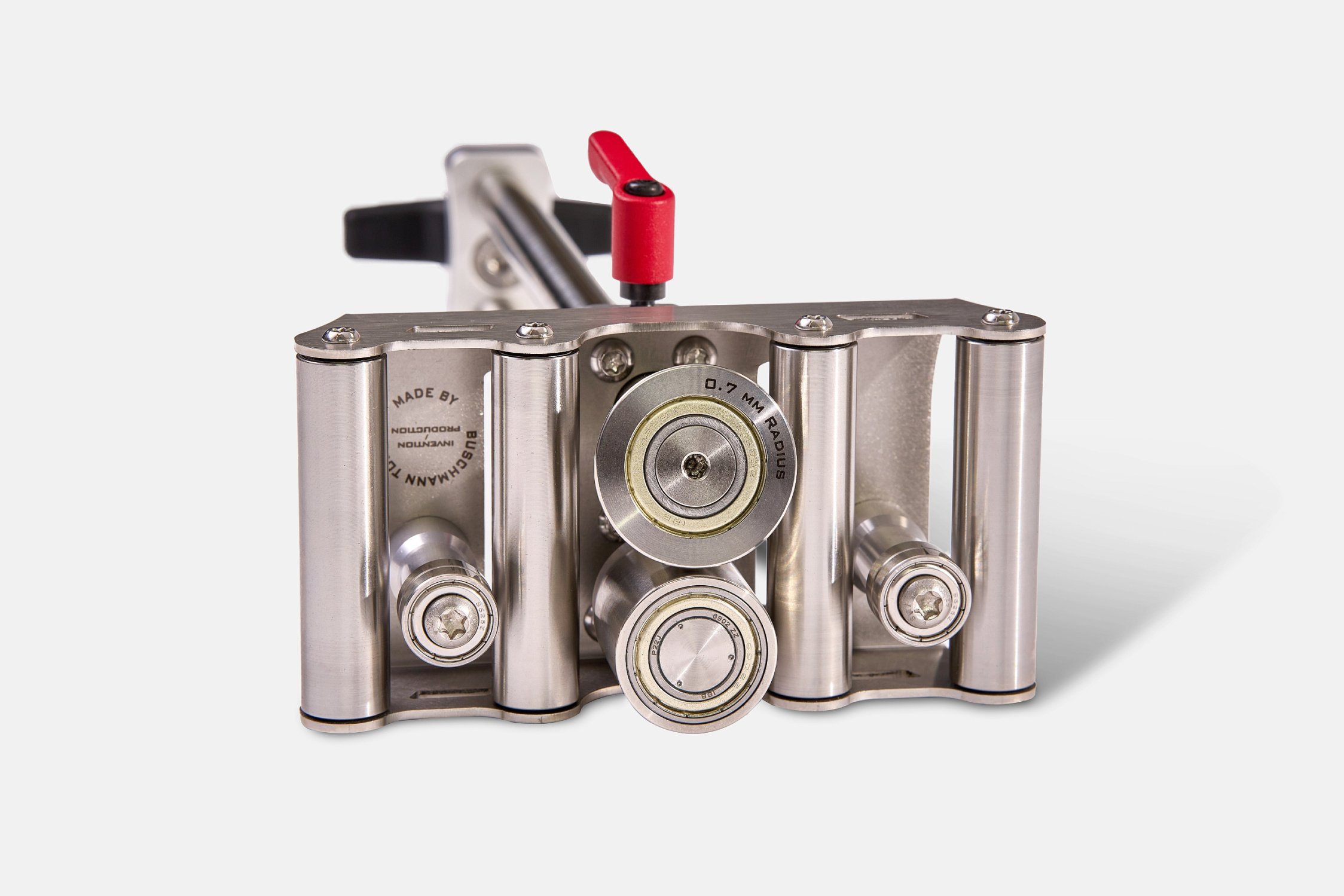 Ролик, который поднимается на 10 градусов, гарантирует, что металл не поцарапается в процессе и значительно улучшает качество результата.