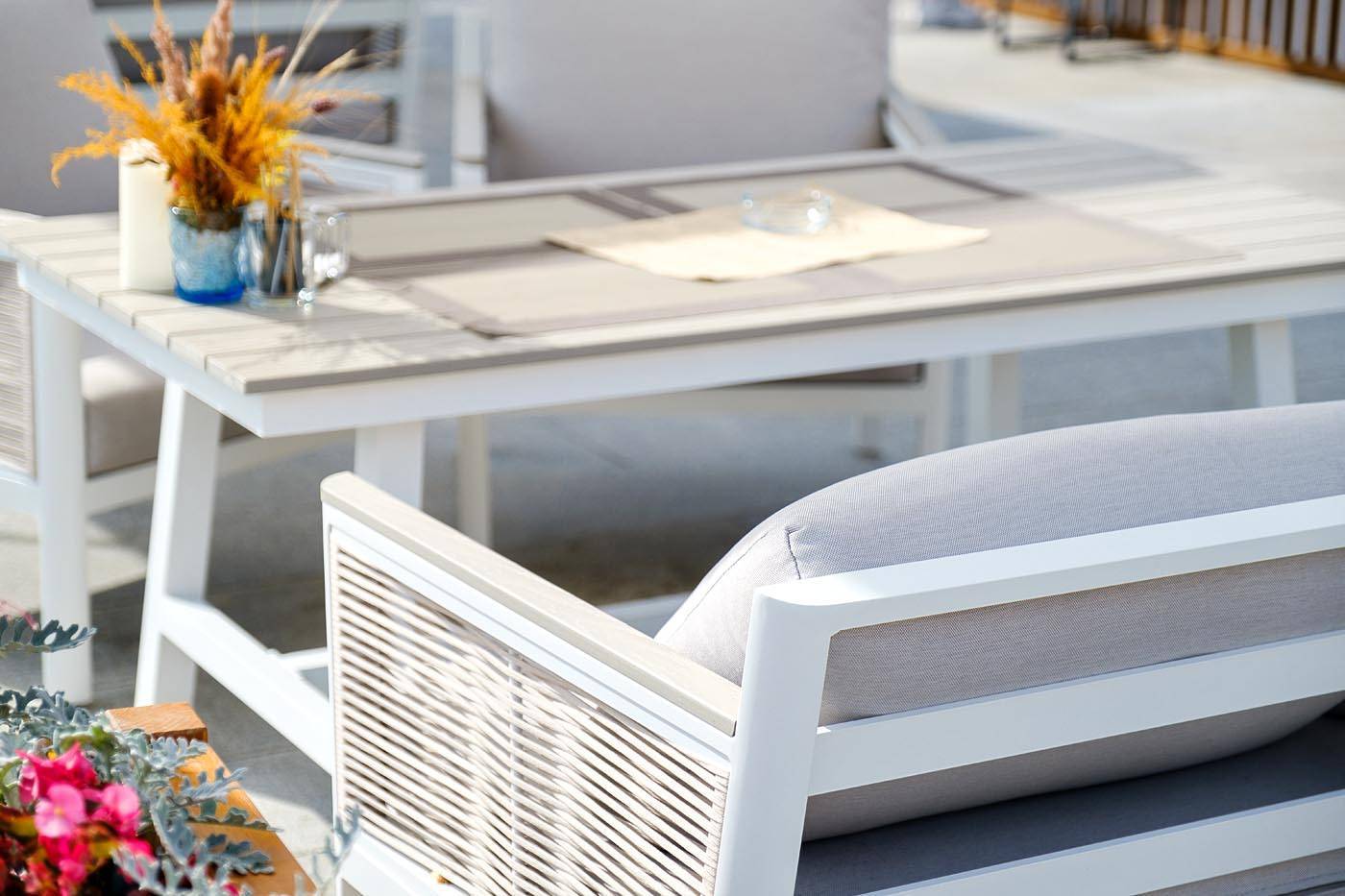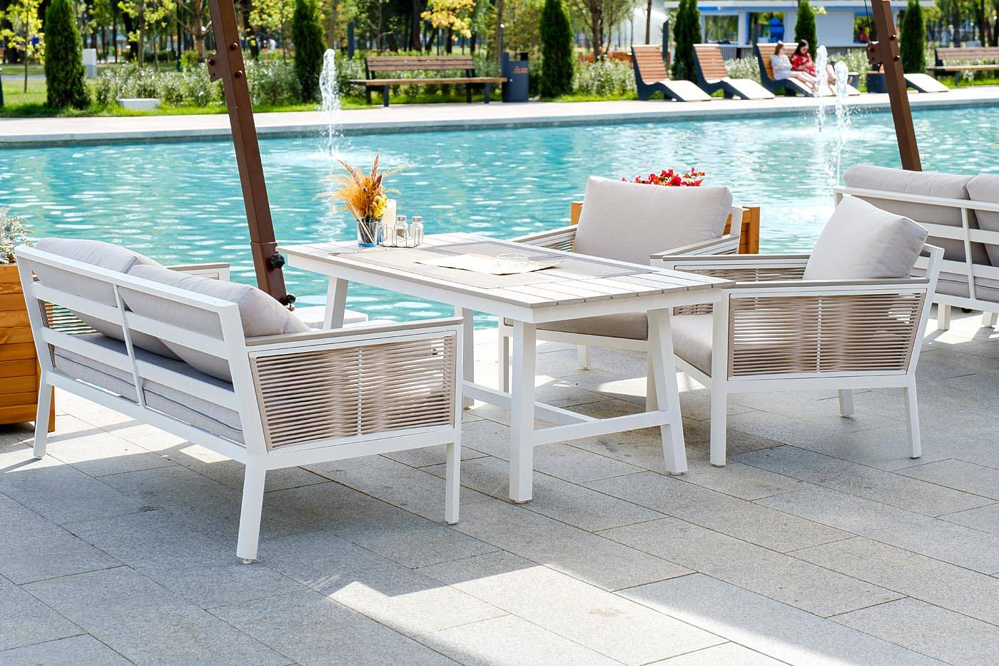 Садовый стол «Сан Ремо» для обустройства летней веранды ресторана или зоны отдыха в саду. Выполнен в современном минималистичном стиле.
