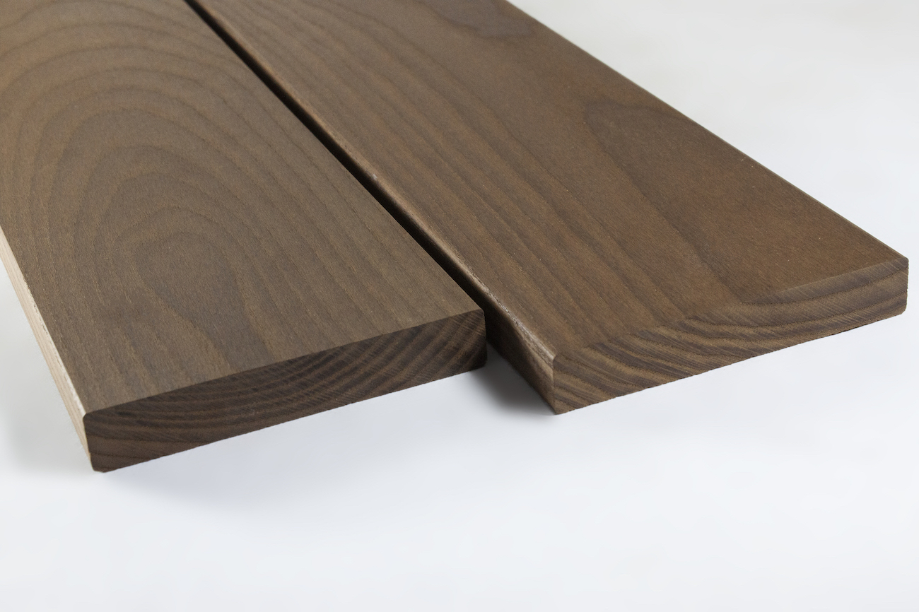 Термоясень отличается высокой твердостью, поэтому полы из такого материала обладают повышенной износоустойчивостью и геометрической стабильностью, даже под длительным воздействием влажности и атмосферных факторов. Доска из термообработанного ясеня имеет красивый темный оттенок с четко выраженной текстурой и не требует специального ухода.