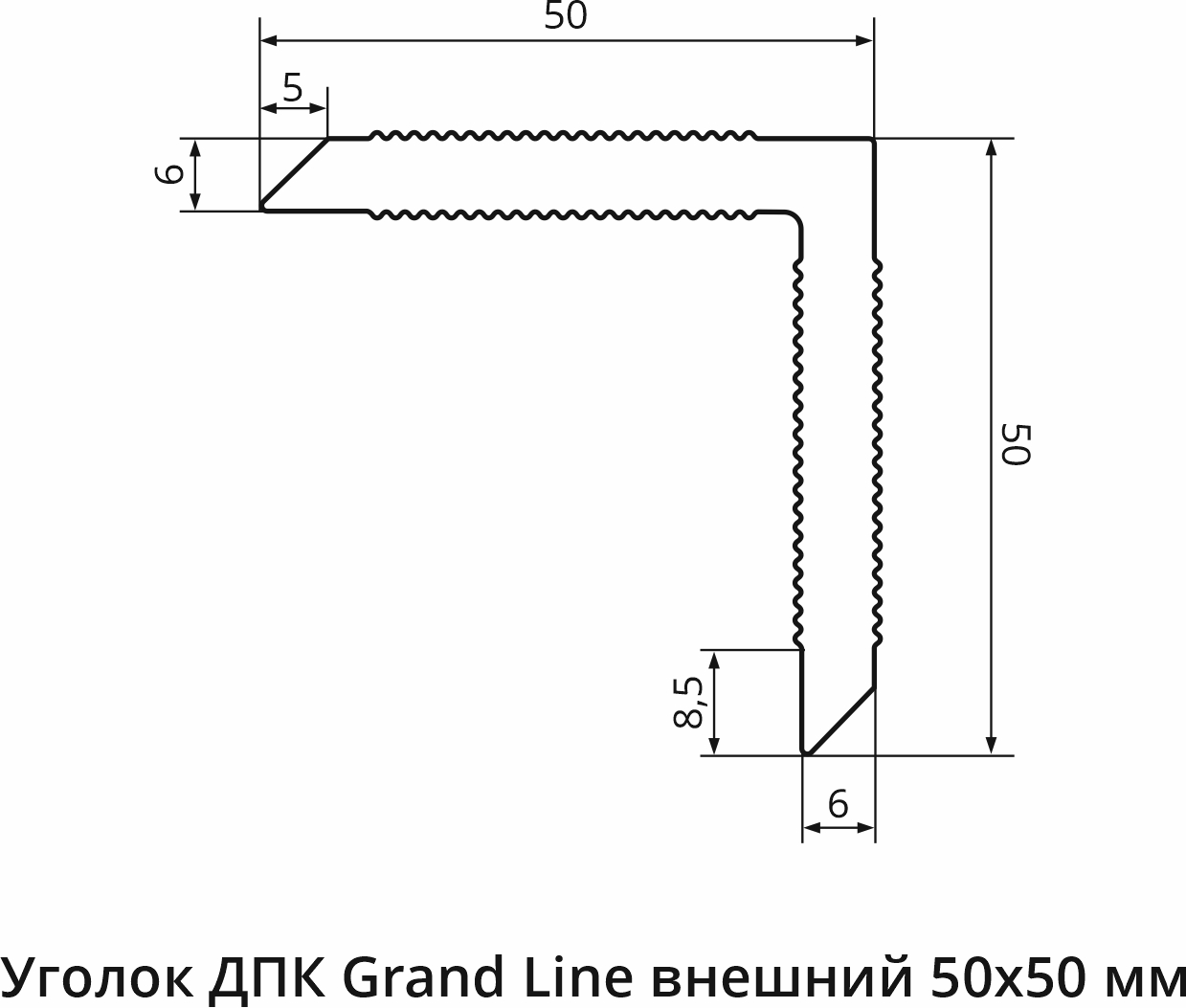 Уголок декоративный 50х50 из ДПК Grand Line — используется для обрамления внешних углов террасы, для устройства примыкания к стене.