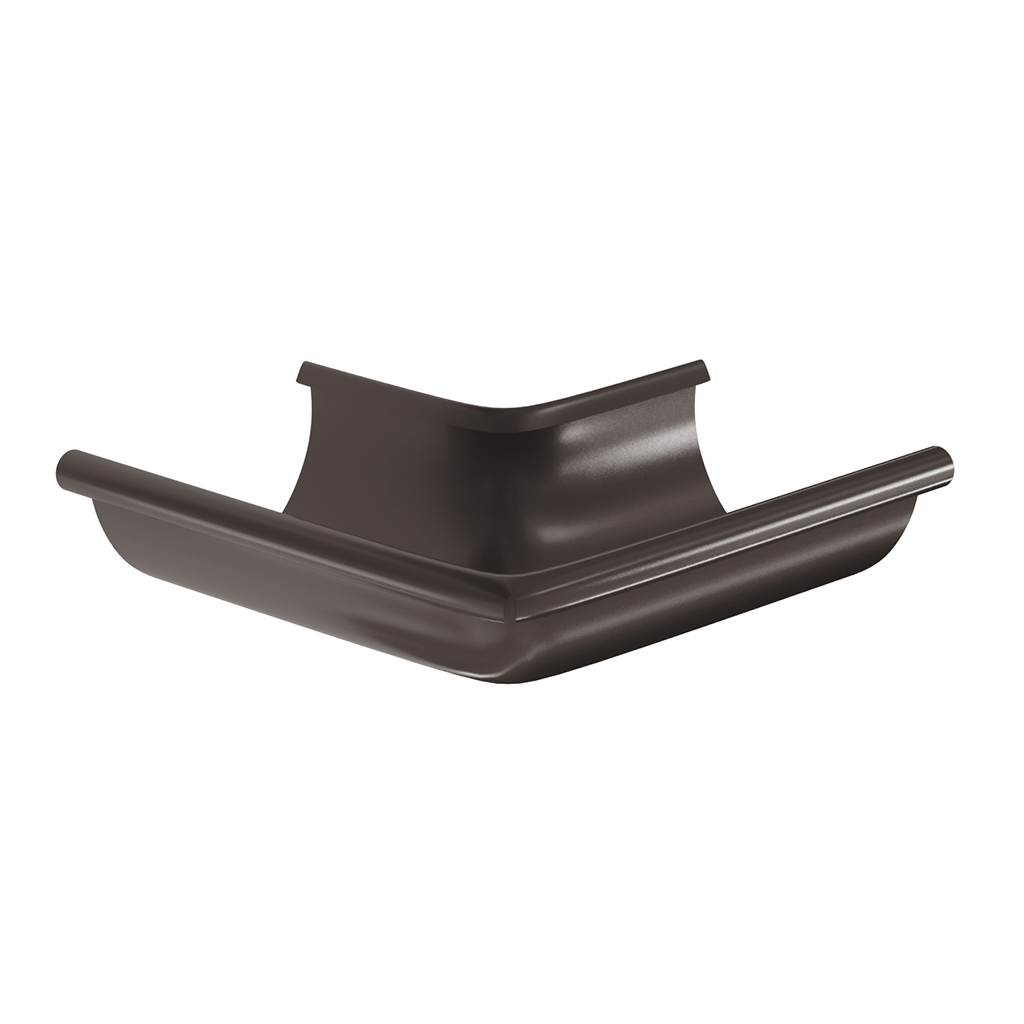 Угол желоба наружный 90° устанавливается на внешних углах кровли и предназначен для изменения направления движения воды. Угол выполнен по уникальной технологии без сварного шва (цельнометаллический).