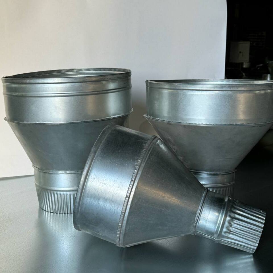Воронки бывают двух видов, открытые и закрытые, последние встречаются редко. Производятся классические воронки разных размеров. Как и другие изделия можно заказать воронки в порошковой окраска по карте РАЛ.